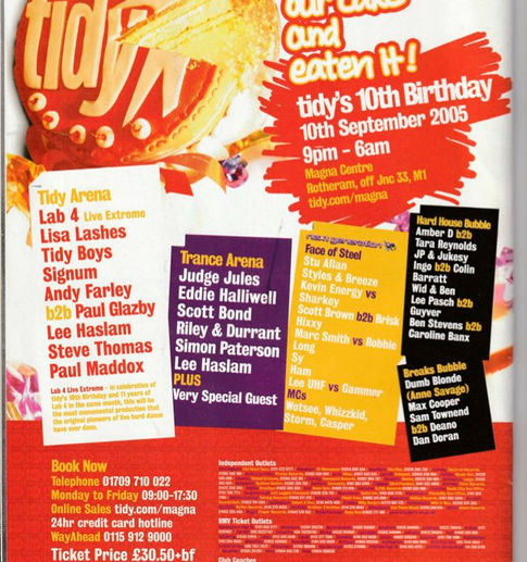 • 2005 is an absolutely insane year for festivals in the UK with We Love Homelands, Escape Into The Park, Glastonbury,Tidy Summer Camp, T In The Park, Glade, Tribal Gathering, Godskitchen Global Gathering, The Big Chikl, SW4, Coalition, Creamfields, Get Loaded In The Park, Bestival ALL in the same summer! In Europe Dance Valley, Exit, Sonar and Benicassim were all going strong.